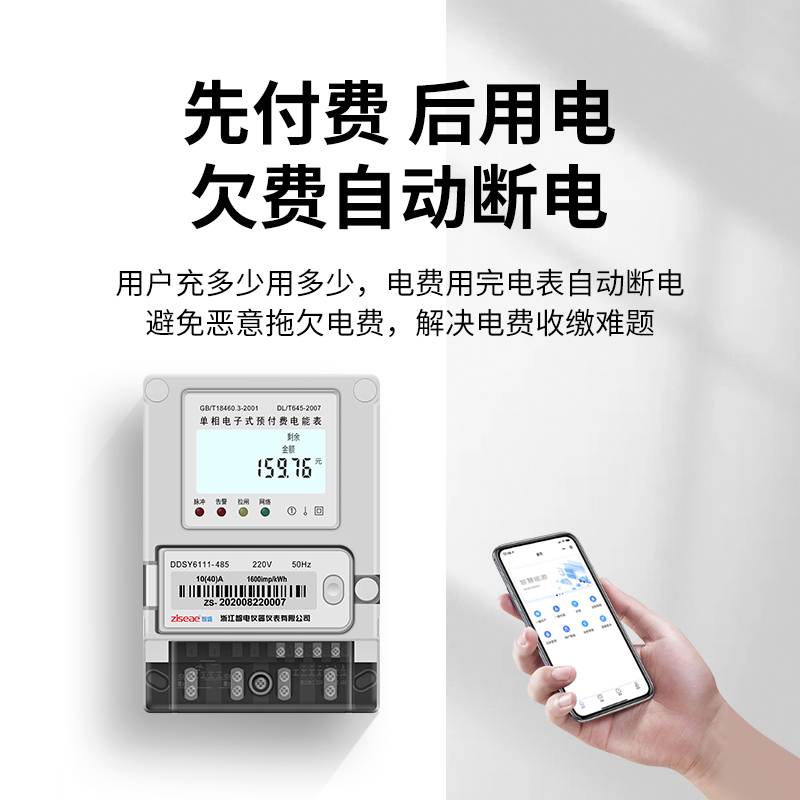 預(yù)付費電表,與常規(guī)通信裝置組網(wǎng),或通過4G,NB等通信方式,將監(jiān)測數(shù)據(jù)上傳至預(yù)付費管理系統(tǒng),通過微信小程序進(jìn)行繳費管理.。