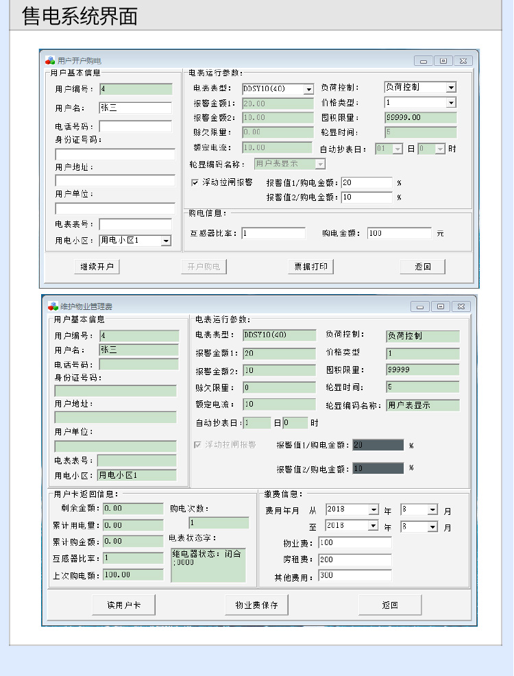 (2)預(yù)付費電表的功能:經(jīng)典款電表是上顯示剩余電量、總用電量等,1代物業(yè)版電表上顯示剩余于金額、總用電量等,2代物業(yè)版電表上顯示剩余金額、總用電量、物業(yè)、房租剩余天數(shù)、北京時間等具體功能如下。