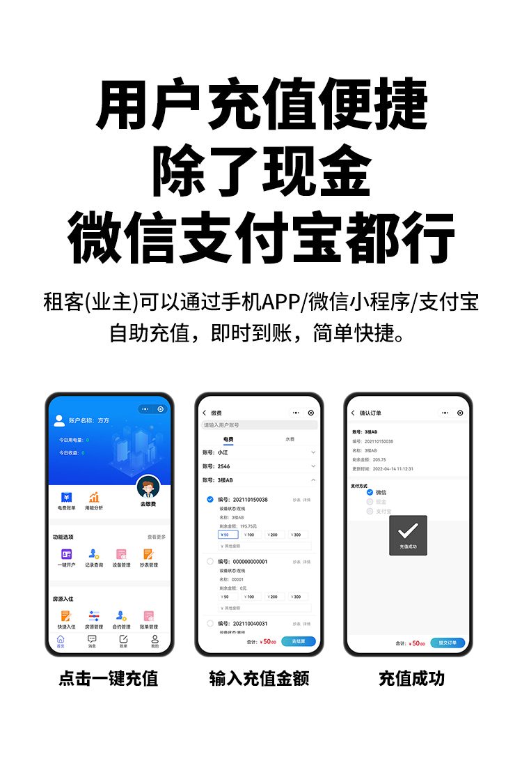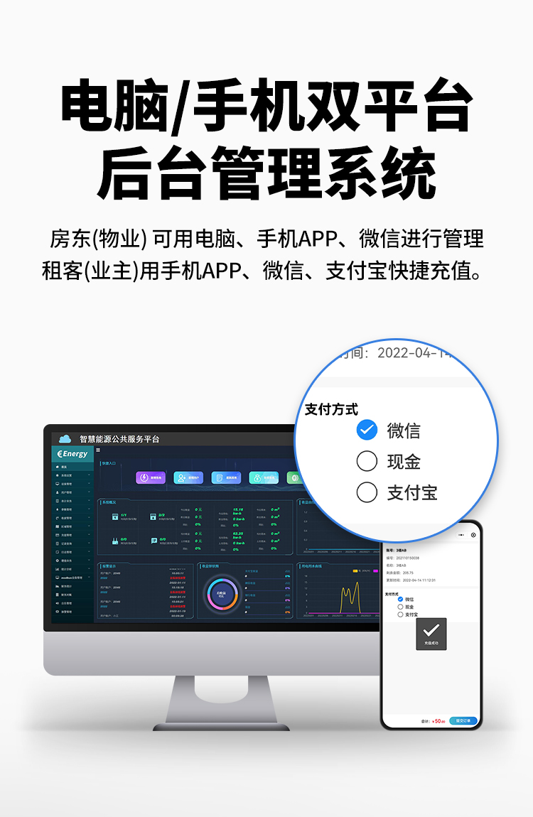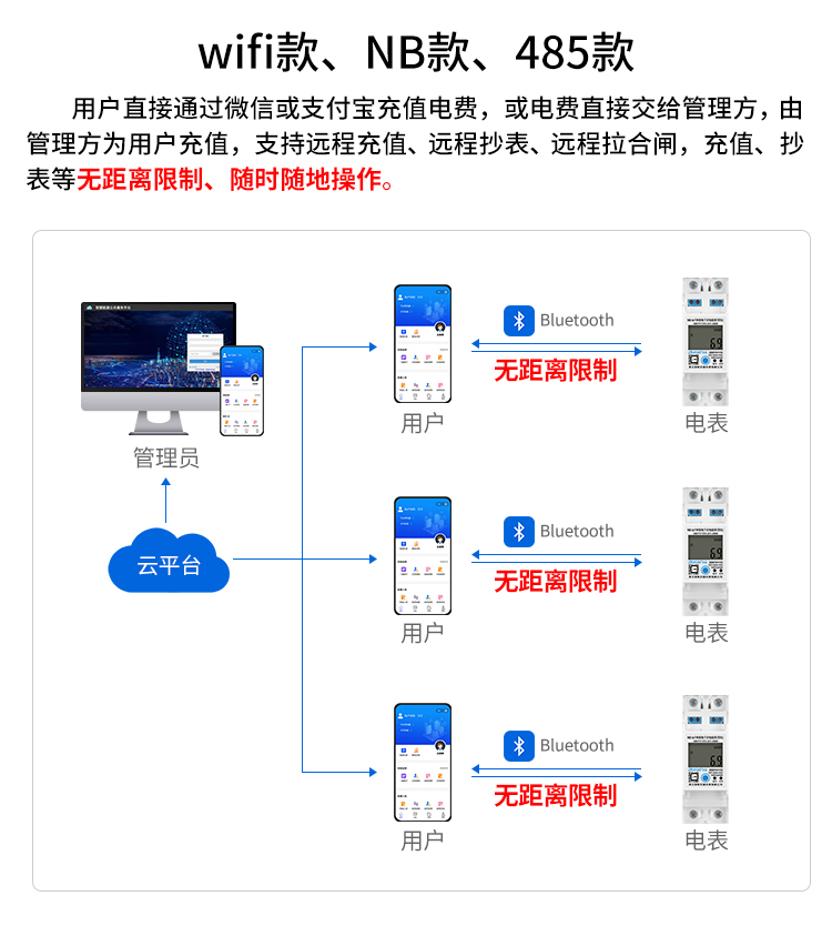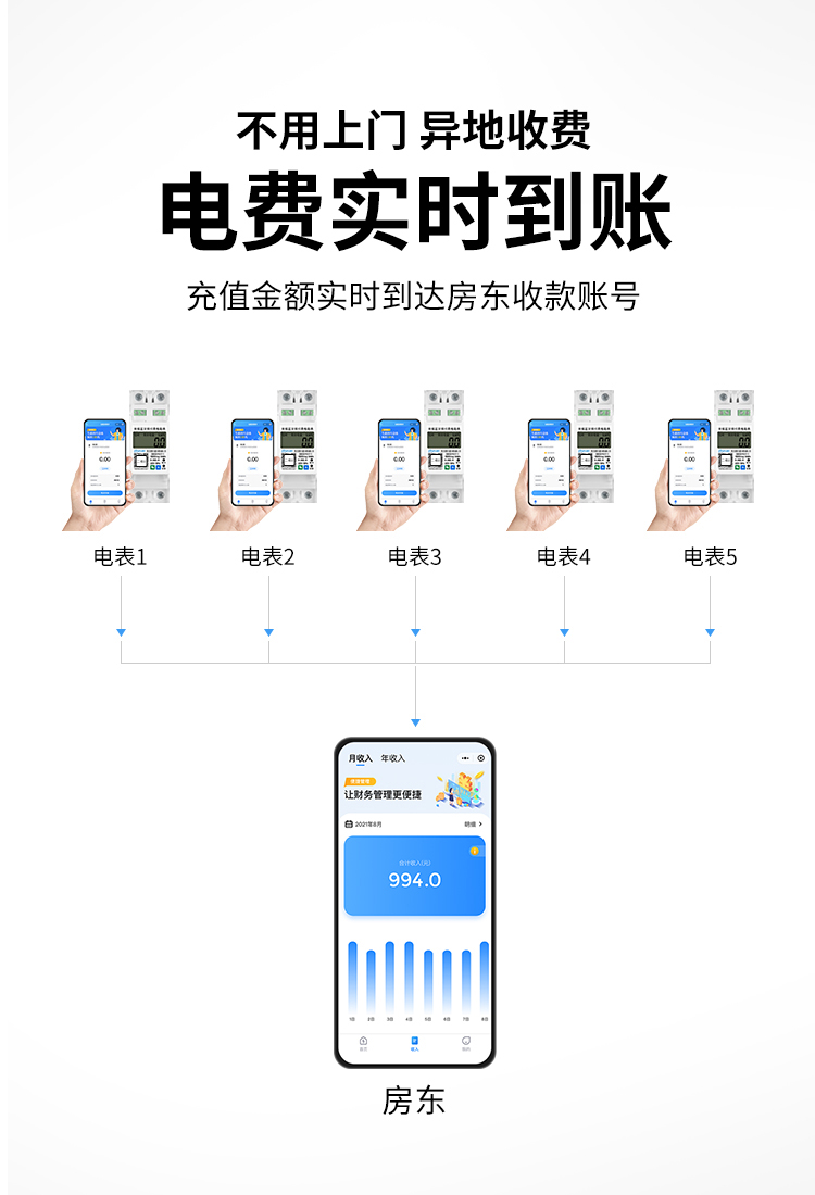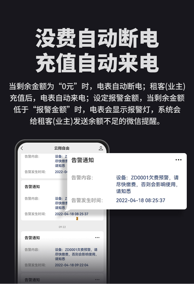本公司DDSY6111/DDZY6111遠程智能電表與本公司遠程抄表系統和手機APP配套使用,遠程抄表管理系統具有實時抄表、定時抄表外,還提供了設備管理功能,如告警、余額短信通知、遠程充值、手機抄表、手機查詢、手機充值、預付費、后付費、自助充值機充值、遠程拉合閘、各種查詢報表、統計報表下載等功能。
