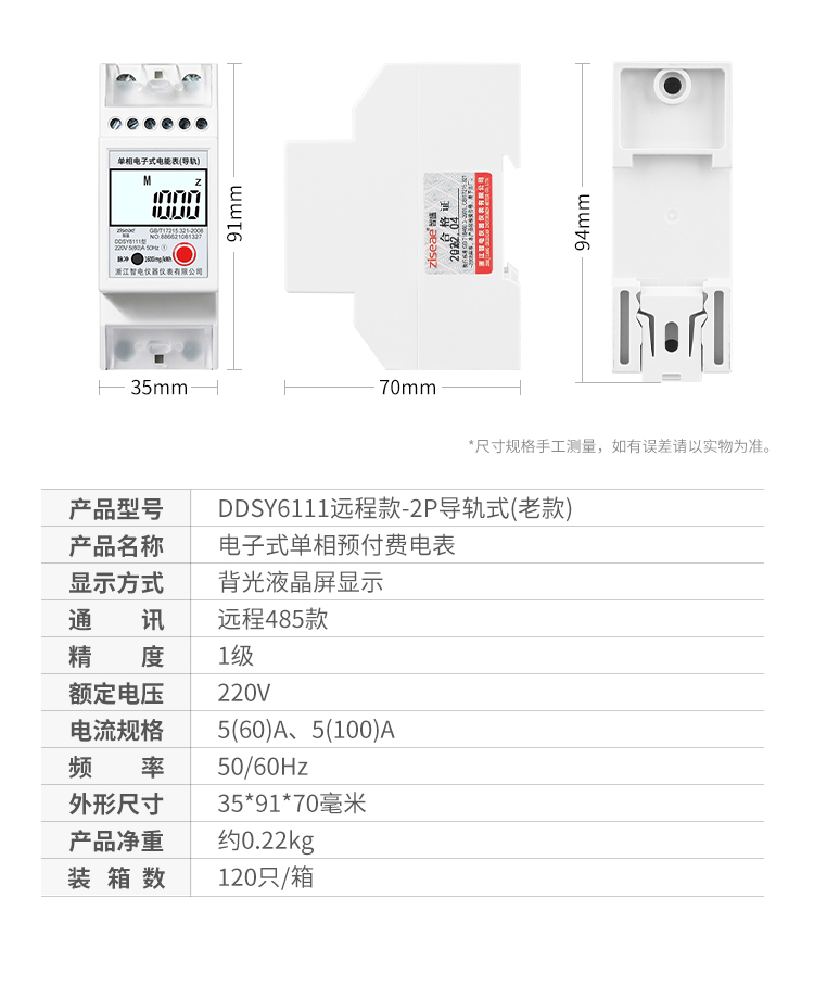 訂購產品: 2P單相導軌遠程智能電表485