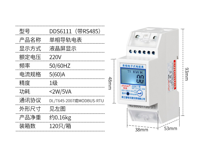 DDS6111單相導軌式電表2P(RS485通訊接口)