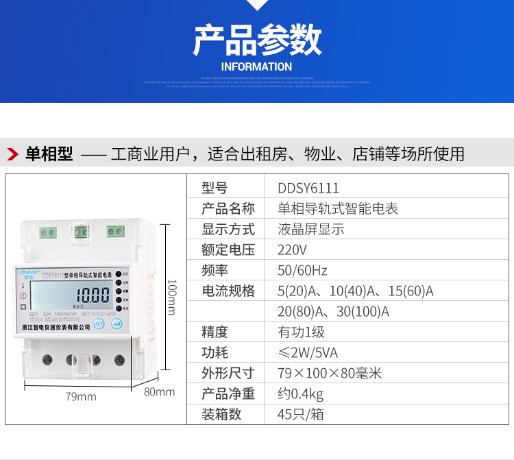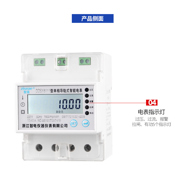 DDSY6111型遠程導軌式單相預付費電能表,采用單片微控制器進行數據采集,處理和保存。具有良好的抗電磁干擾,低功耗,高過載準確度高,壽命長等優點。其性能指標符合GB/T 17215.321-2008《1級和2級靜止式交流有功電度表》中對電子式有功電度表的技術要求,符合GB/T15284-2002《多費率電能表 特殊要求》對復費率電能表的技術要求,并符合GB/T18460-2001《IC卡預付費售電系統》的各項技術要求。通信規約可支持DL/T 645-2007《多功能電能表通信規約》,為用電自動化管理提供了必備的條件。