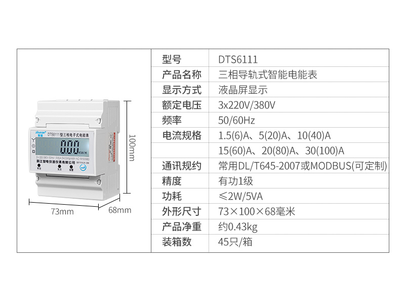 DTS6111、DSS6111型三相有功電能表,是一種室內三相電能表,是我公司為了適應我國電網改造,適應我國國情而設計開發的電能表。它具有較高的準確度和可行性。本儀表采用國際先進的低功耗模集成電路技術及SMT先進工藝,關鍵元器件選用進口品牌、長壽命器件,提高了產品的可靠性,延長了使用壽命。準確計量有功電能,且可以通過紅外通訊方式抄電量,讀數直觀且使用方便。本儀表設計符合標準GB/T 17215.321-2008《1級和2級靜止式交流有功電能表》、GB/T 17215.323-2008《2級和3級靜止式交流無功電能表》。